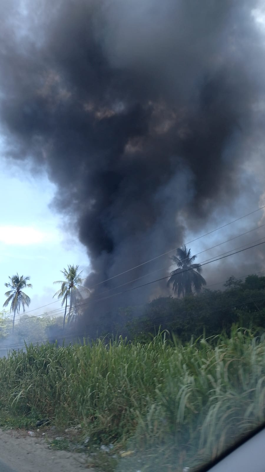 incendio en la carretera #Comalcalco– #Paraíso, después del fraccionamiento “Blancas Mariposas”.