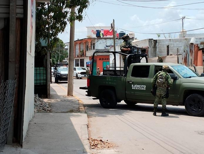 operativo en la calle Halcón de la colonia Asunción Castellanos; hay elementos de la Sedena, FGE y SSPC en la zona