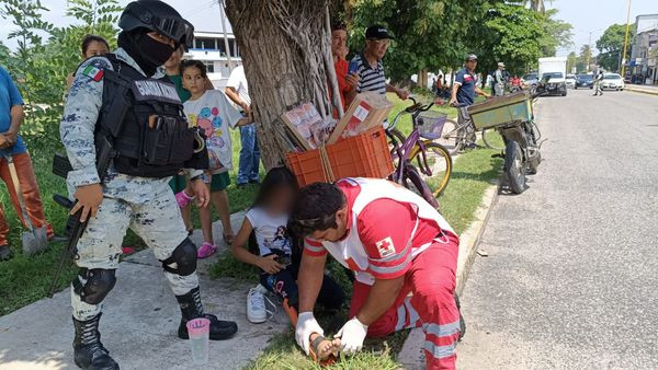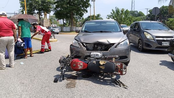 Un padre y su hija de siete años de edad resultaron heridos luego de ser atropellados por un vehículo compacto que supuestamente se habría pasado el alto en el crucero de Soriana en el municipio de Cárdenas.