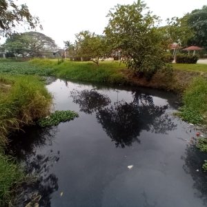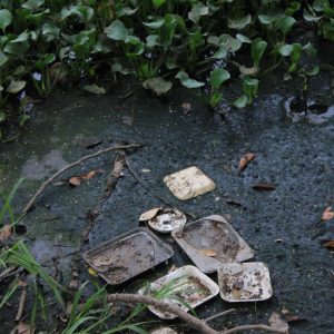 Drenes sucios y vasos reguladores llenos de lirio.