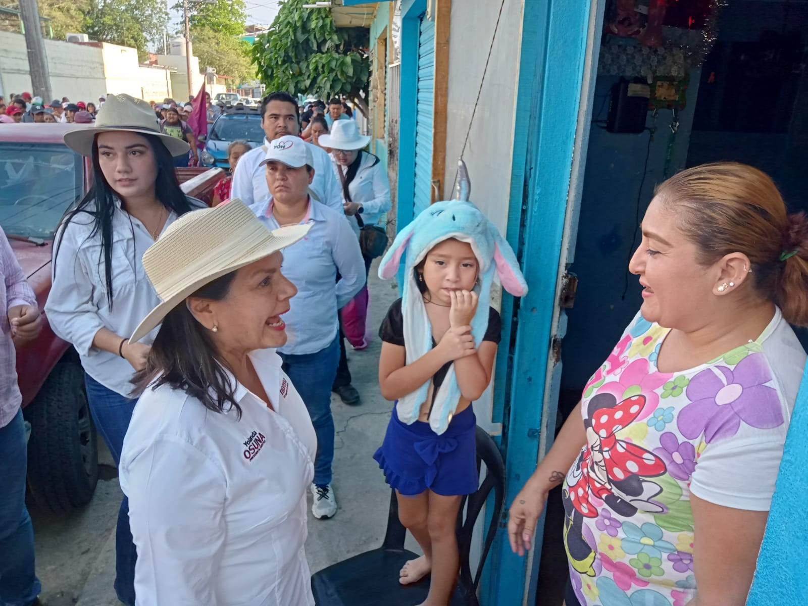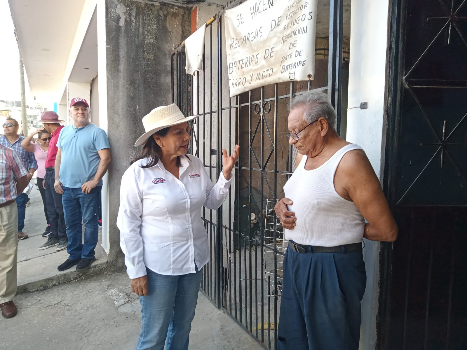 La abanderada de Morena a la alcaldía de Centro Yolanda Osuna Huerta, recorre está tarde casa por casa en busca del voto , la populosa colonia Guadalupe Borja.