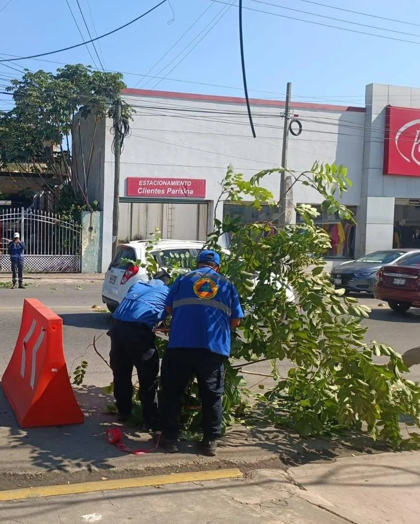 • Con ramas es como protección civil del Centro resuelve el provoca de socavón que se encuentra en av. Méndez en Tamulté de las Barrancas.