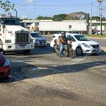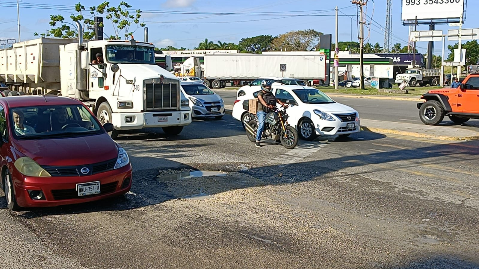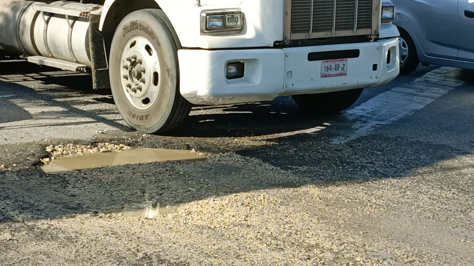 Bache de importantes dimensiones en la vía Periférico, justo en el cruce con Ruiz Cortines a la altura del puente Los Monos