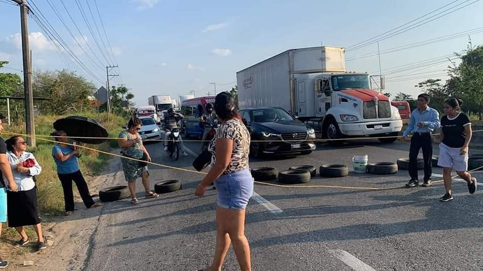 Habitantes cierran la carretera Villahermosa – Frontera, a la altura del fraccionamiento Las Rosas, por falta de energía eléctrica