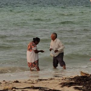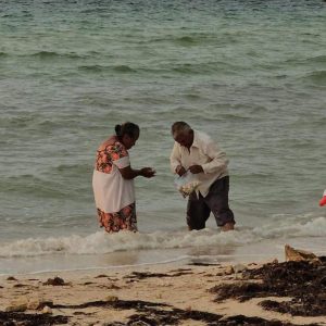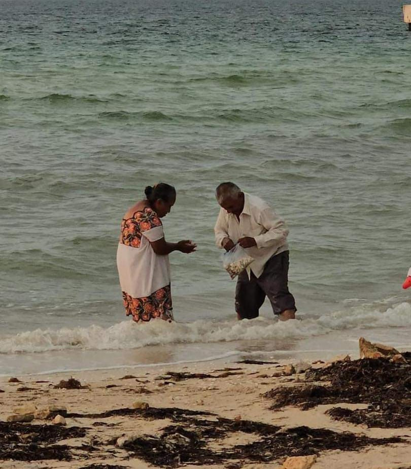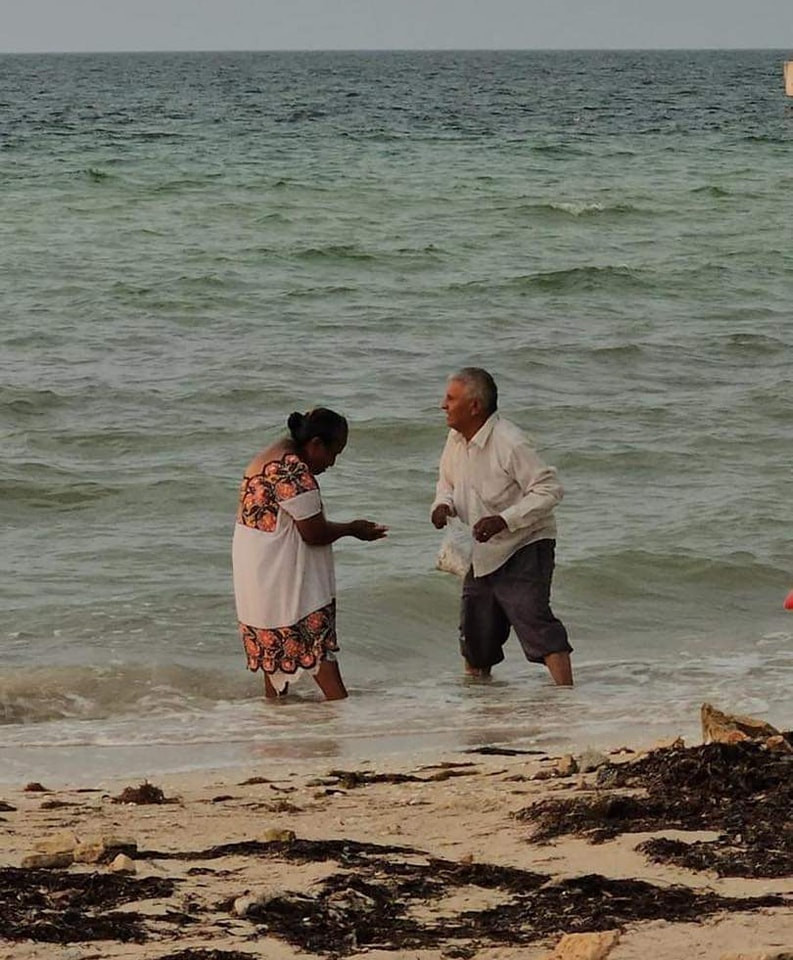 • Pareja de abuelitos yucatecos recolectan conchitas de mar en las playas de #Telchac, #Puerto🌊