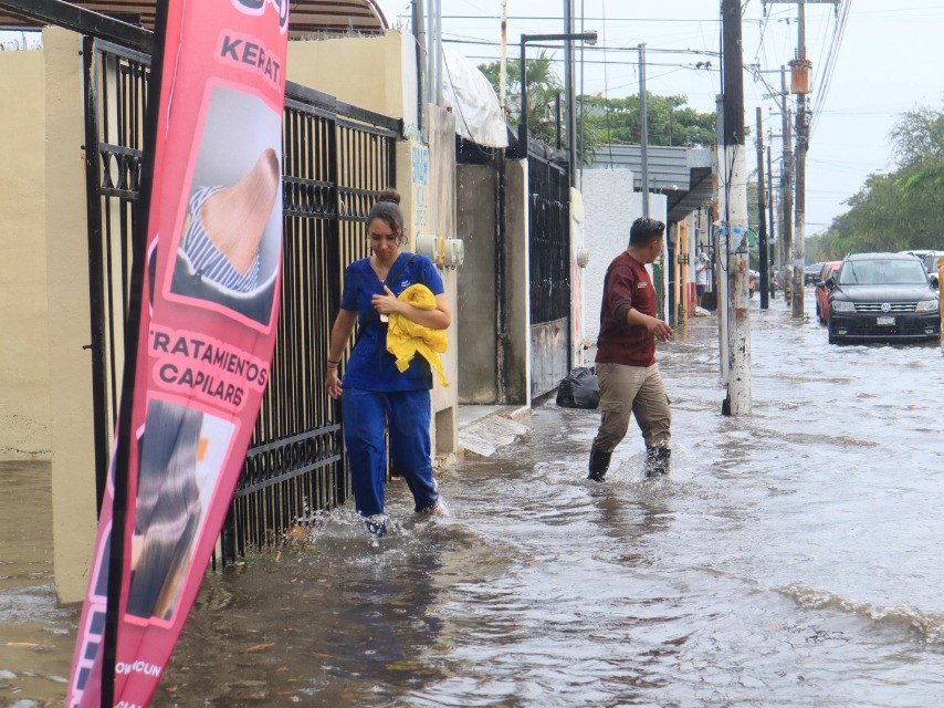 En #Cancún, así quedaron varias calles y avenidas tras las fuertes lluvias que se registraron este día por Frente Frío No. 45, dejando varias vialidades afectadas
