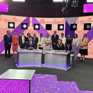 Las Consejeras y los Consejeros del INE se reunieron con las candidatas y el candidato presidencial, así como con las personas moderadoras, momentos antes del inicio del primer #DebateINE presidencial a realizarse en las instalaciones del Instituto.