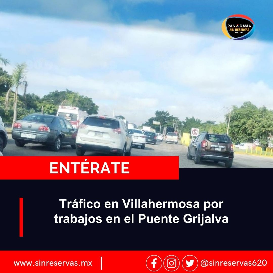 #Entérate | Se reporta tráfico en la entrada de #Villahermosa debido a trabajos de mantenimiento en el Puente Grijalva. Los conductores que ingresan a la ciudad pueden experimentar demoras en su trayecto. Se recomienda prever tiempos adicionales de traslado y considerar rutas alternas si es posible.