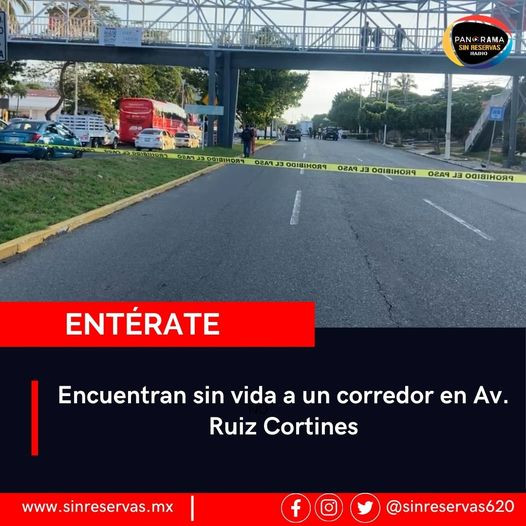 #Entérate | Esta mañana un hombre fue localizado sin vida, fue atropellado sobre la Av. Ruiz Cortines; se trataba de un corredor. El tráfico en la zona es lento.