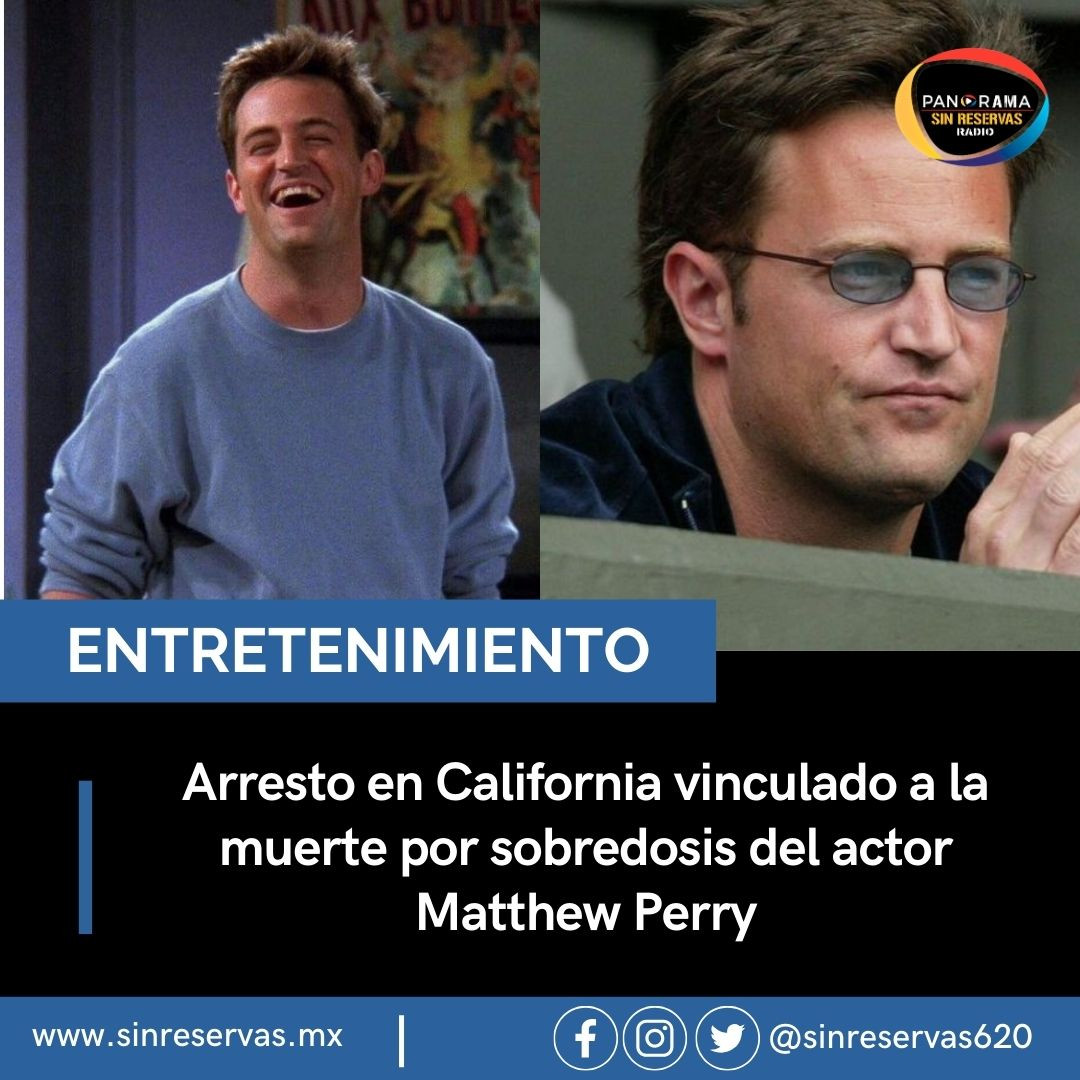 #Entretenimeinto | Arrestan a una persona en California por la muerte del actor Matthew Perry, de 54 años, en octubre de 2023. Perry fue hallado sin vida en su piscina en Los Ángeles. La autopsia reveló una sobredosis accidental de ketamina.