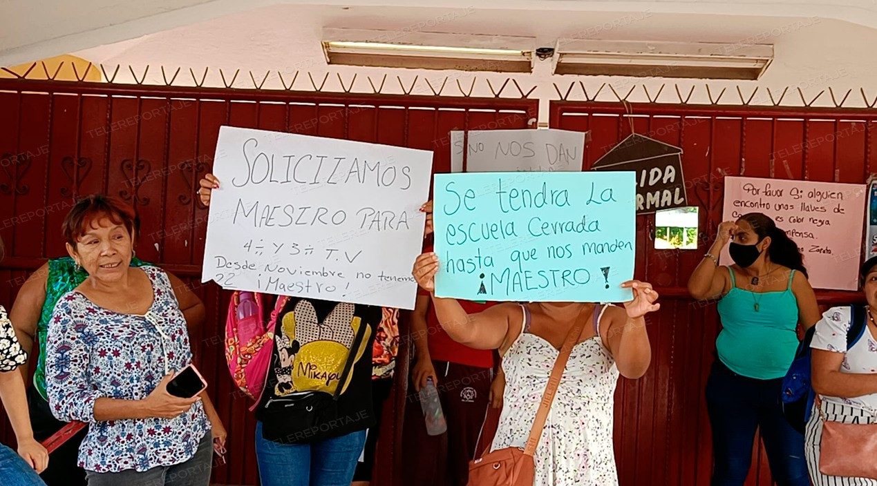 Padres de familia de la primaria ‘Graciela Pintado de Madrazo’ cierran la escuela, desde el pasado mes de noviembre, los alumnos de 3ro y 4to año del turno vespertino están sin maestro; ya solicitaron un docente a la Setab, pero no les han dado respuesta