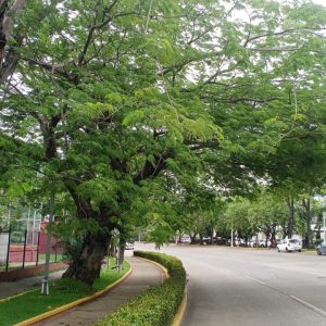 La temporada de lluvias ya llegó y los árboles viejos y enfermos del velódromo de la Ciudad Deportiva no se han talado; solo los han identificado con marcas.