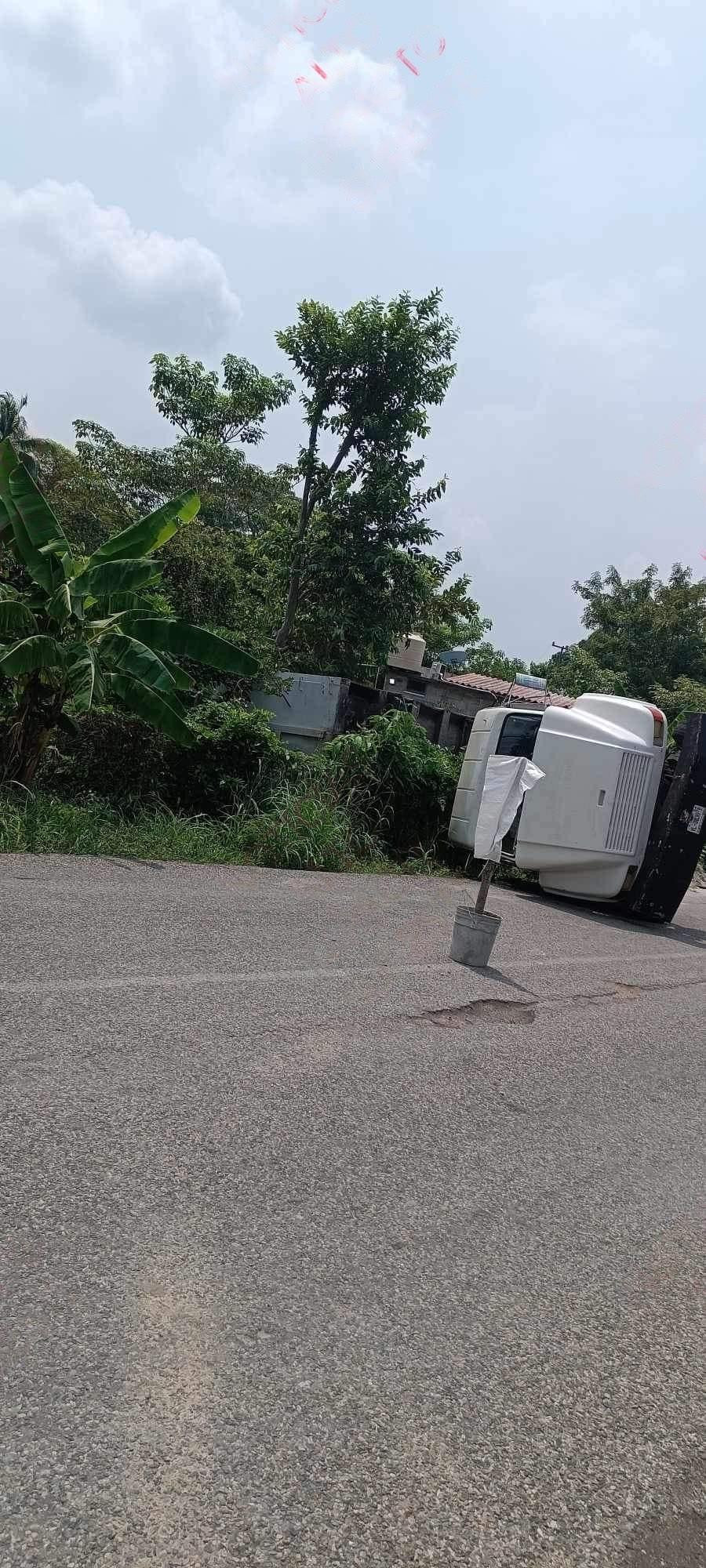 En la Ranchería Ignacio Zaragoza, 1ra sección de Comalcalco, hubo la volcadura de un camión. El accidente fue causado por un exceso en el peso de la carga, lo que llevó a la volcadura del vehículo.