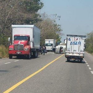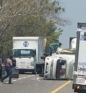Vehículo se volcó en vía federal Villahermosa-Escárcega, Se reporta accidente vehicular, unidad se volcó en tramo de la vía federal Villahermosa-Escárcega, en el kilómetro 102, pasando la entrada a la carretera Zapatero-Jonuta.