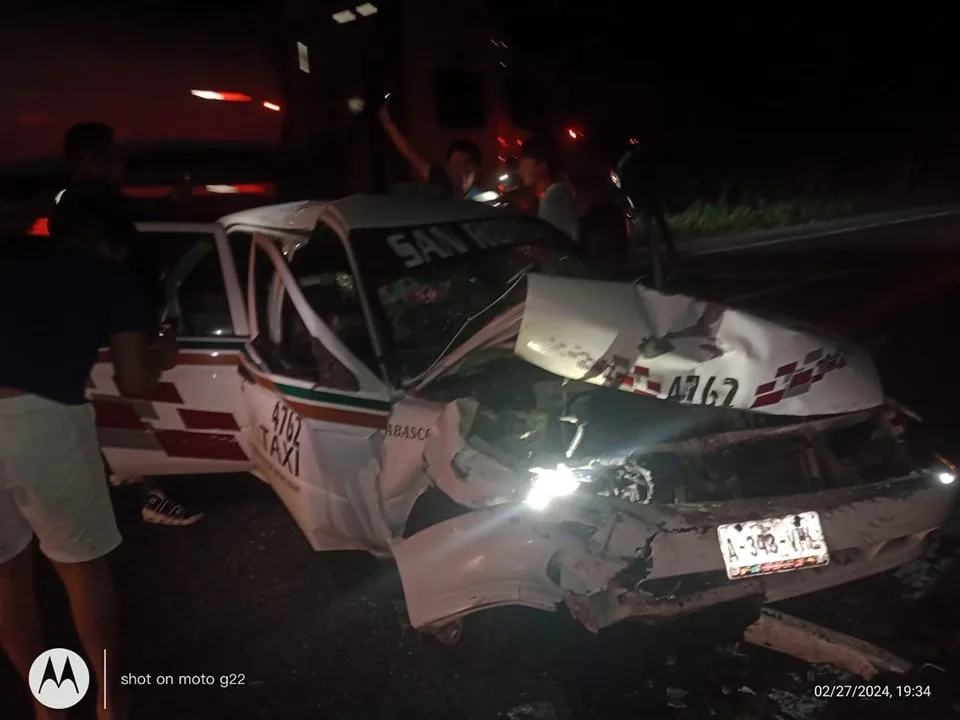 Accidente por la Yuquera en la vía Federal Frontera a Villahermosa, el taxi 4762