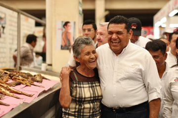 Esta mañana en Villahermosa. El candidato a la gubernatura por morena visito el Mercado Pino Suárez donde saludo a locatarios y visitantes.