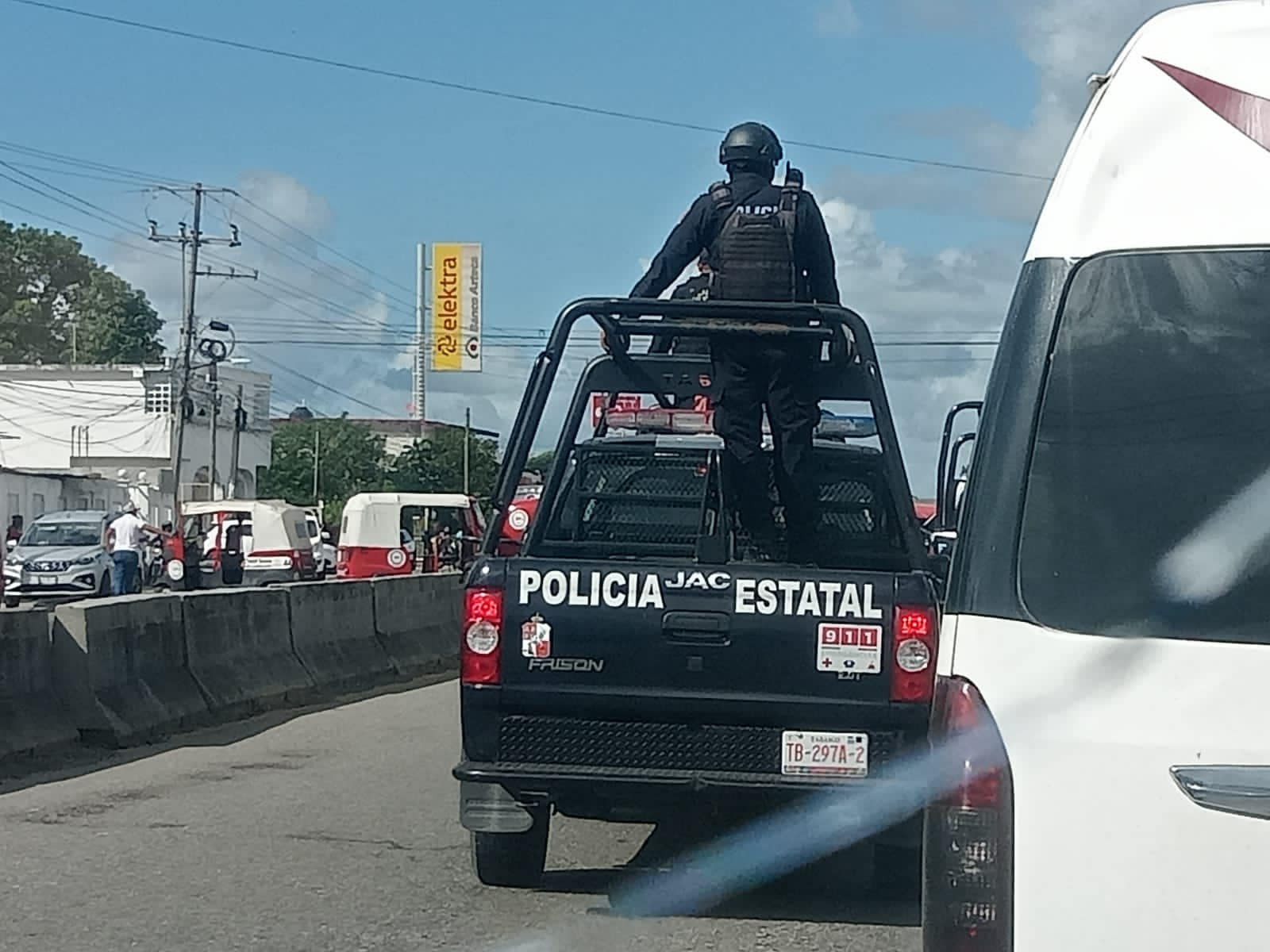 Conductores de “Pochis” bloquean la carretera #Villahermosa – #Frontera, a la altura de #Ocuiltzapotlán.