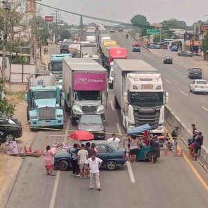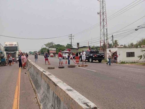 Pobladores de Villa Ocuitzapotlan, bloquean la carretera Villahermosa – Frontera, reclaman que desde el jueves no tienen servicio eléctrico. Piden a las autoridades una pronta solución.