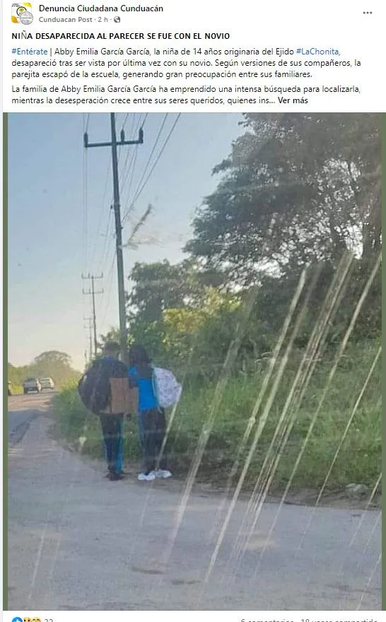 la niña que reportada como desaparecida en Cunduacán no esta desaparecida al parecer se ve que huyo con su novio