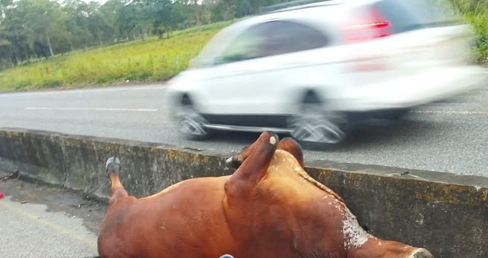 • Piden a los automovilistas circular con mucha precaución sobre la vía corta #Comalcalco#Cunduacán, usuarios reportan una vaca muerta la cual se presume fue atropellada durante la madrugada, ya se le informó a las autoridades y esperan que también arribe el propietario del animal.