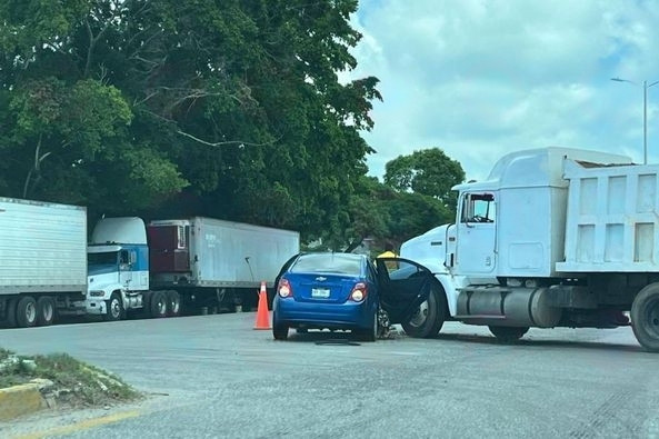 percance en la carretera #Villahermosa– #Macuspana, justo antes de llegar al Aeropuerto. Un camión colisionó con un automóvil, lo que ha provocado un embotellamiento y retrasos para los pasajeros con vuelos programados para esta tarde.