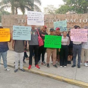 • Estudiantes del Tecnológico de Villahermosa se manifiestan esta mañana para exigir la liberación de las áreas administrativas de la institución, las cuales fueron ocupadas por miembros del sindicato. Los estudiantes indican que esto está afectando sus trámites escolares.