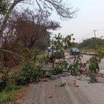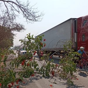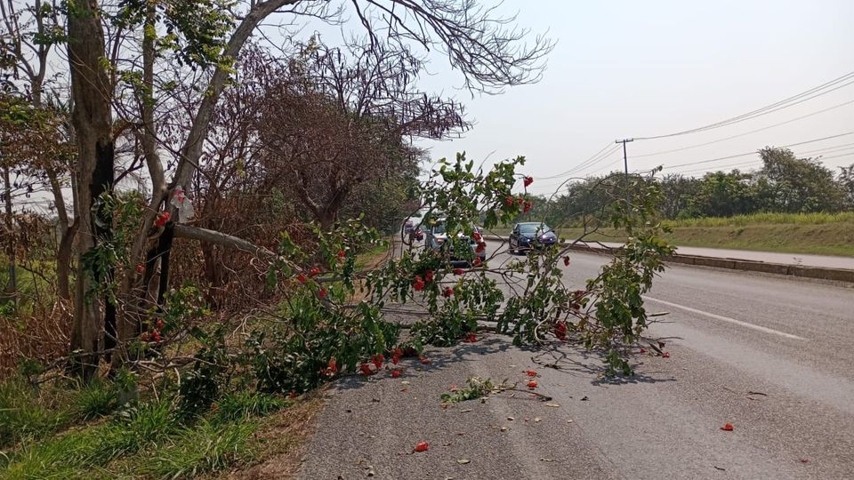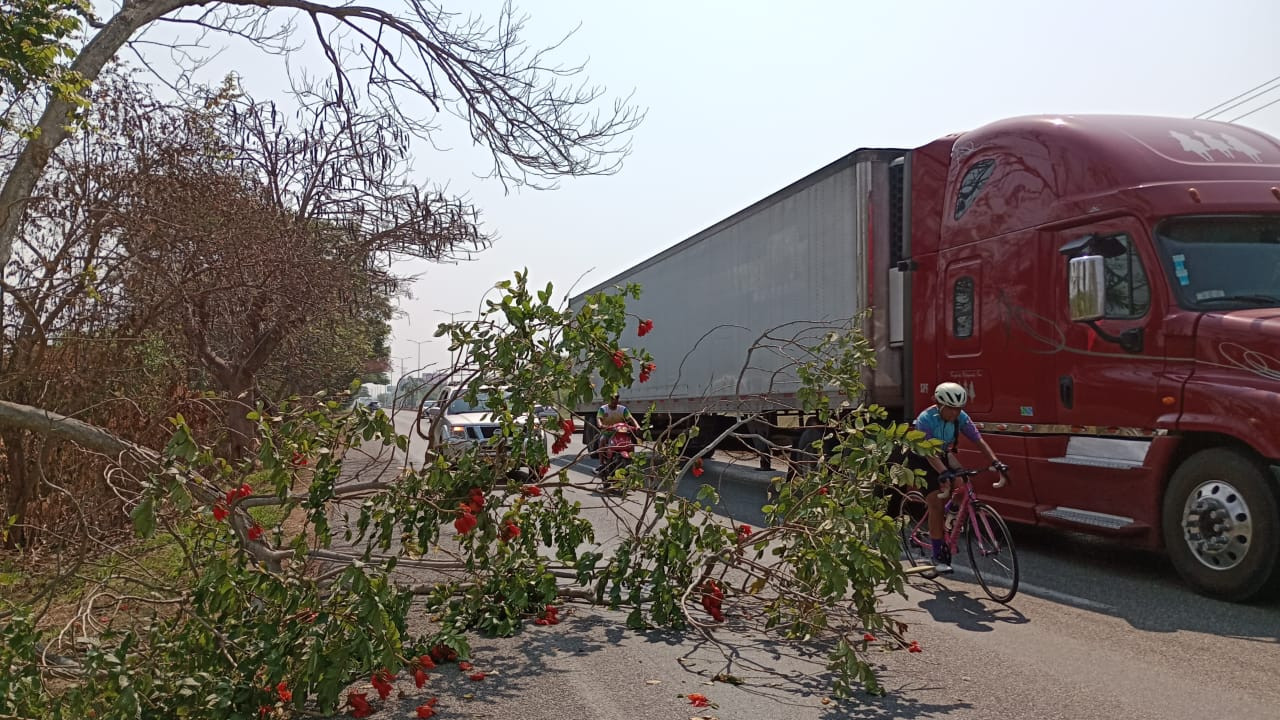 Peligro a la vista rama de árbol obstruye uno de los carriles de la carretera Dos Montes-Villahermosa.