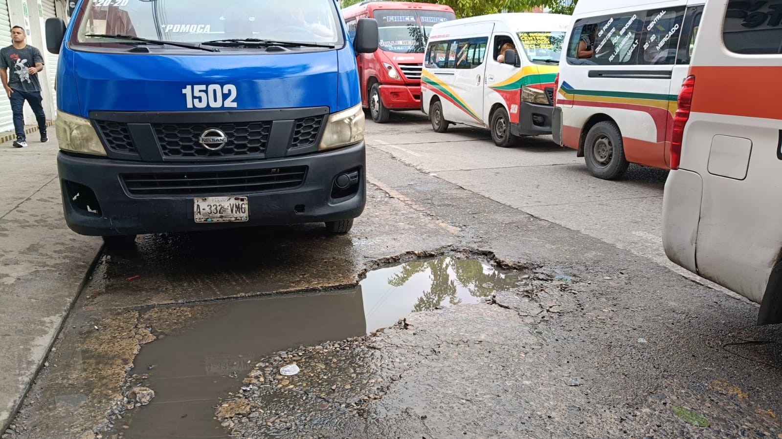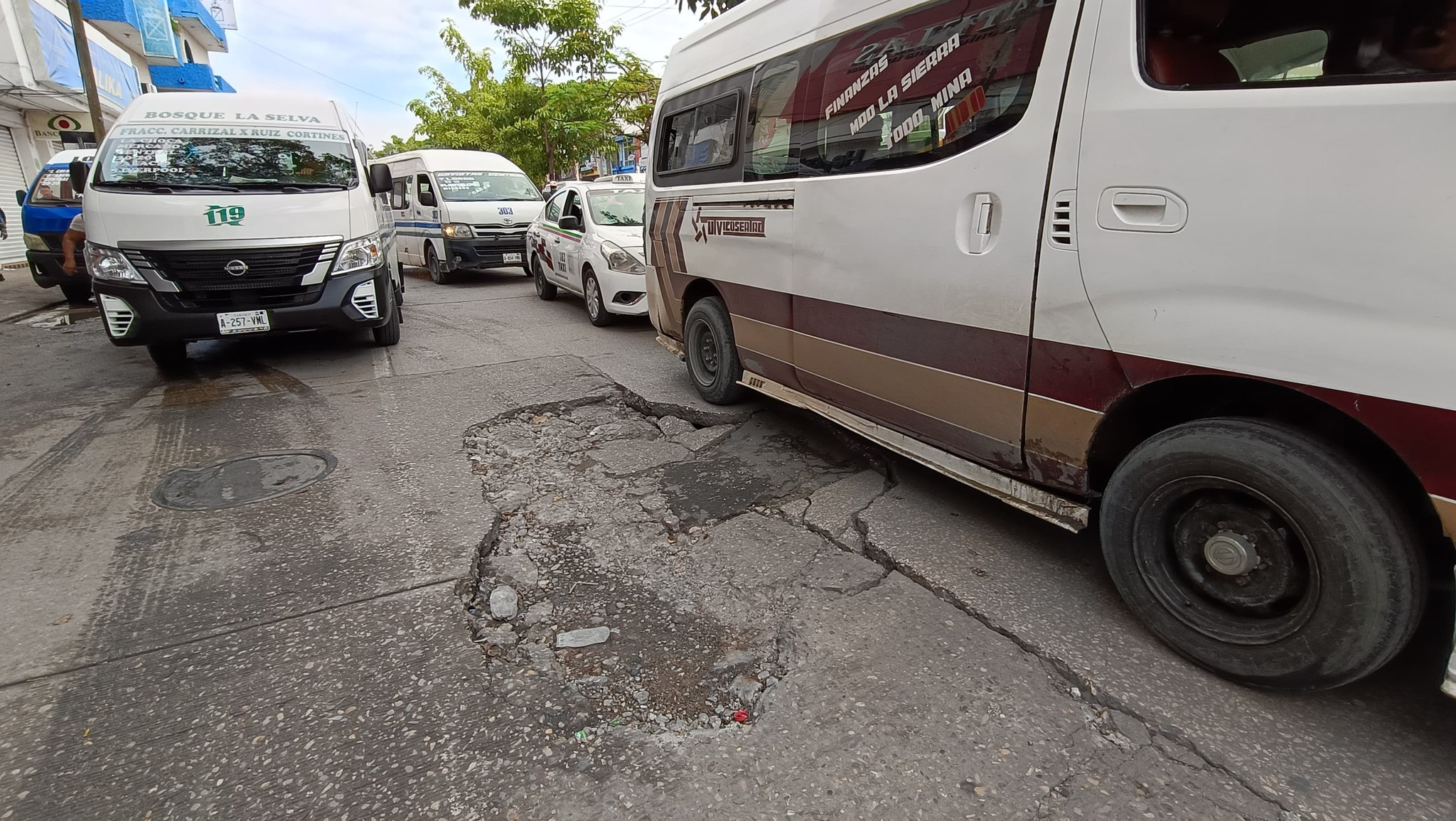 Dos hundimientos complican la circulación en la avenida Francisco I. Madero casi esquina con Hermanos Bastar Zozaya en la colonia Centro