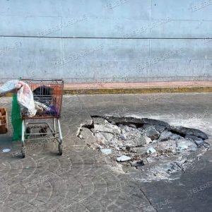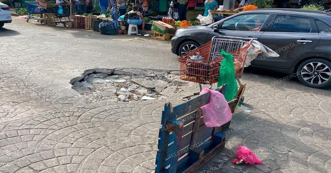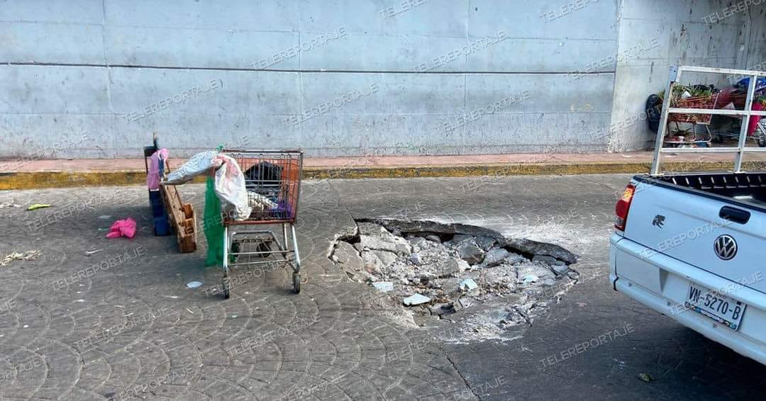 Se vuelve a formar un socavón sobre la lateral del boulevard Adolfo Ruiz Cortines a la altura del #TianguisCampesino; locatarios refieren que el paso de una unidad pesada provocó el hundimiento