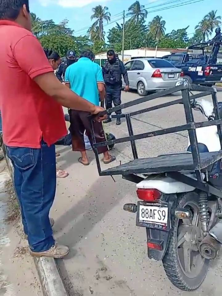 Un repartidor de carnes frías sufrió un accidente de tránsito en la colonia Pénjamo Chiltepec al impactarse contra otra motocicleta. Este mismo motociclista había causado un accidente previamente, tumbando a una pareja en el retorno del Cangrejo en #Paraíso debido a su velocidad.