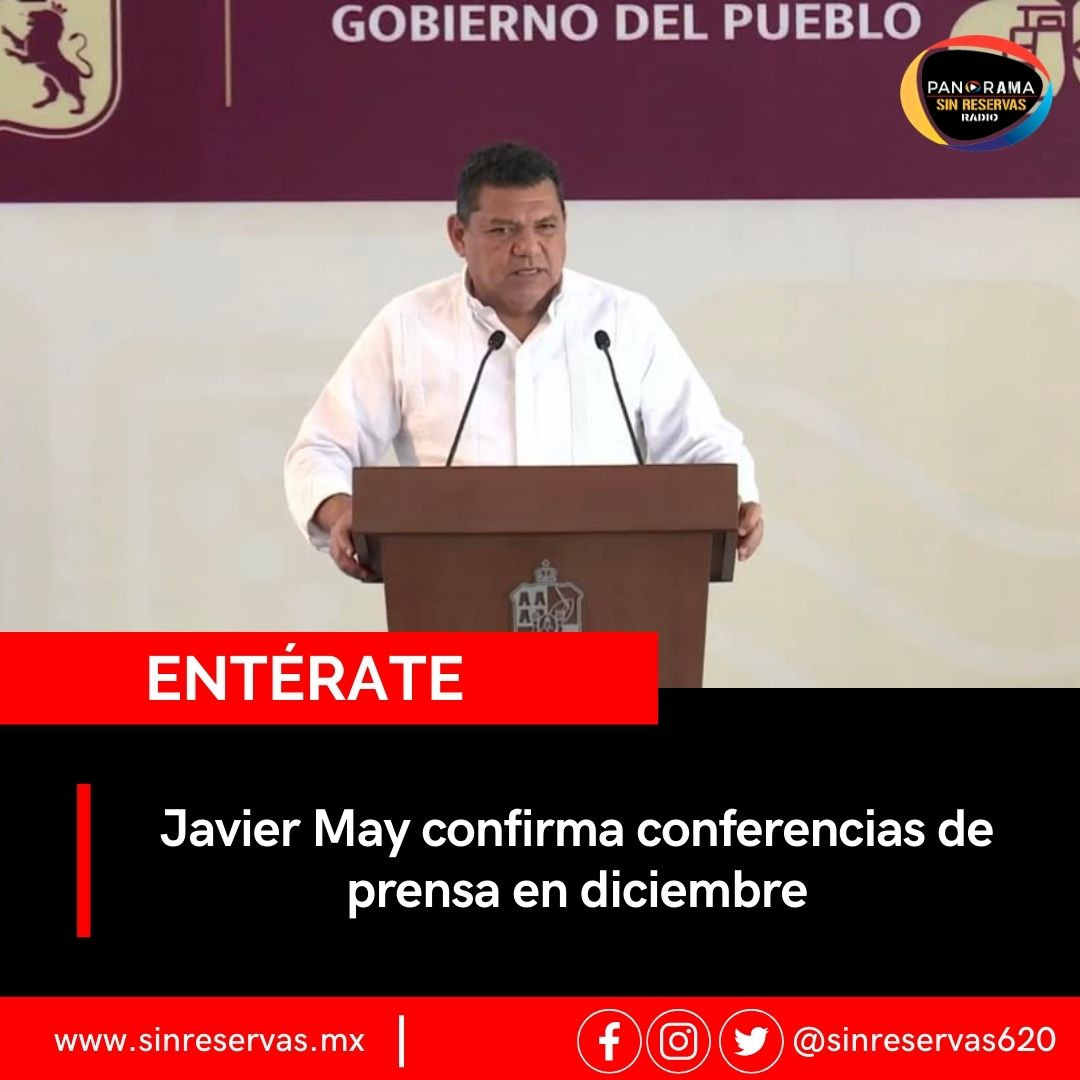 #Entérate | El gobernador Javier May Rodríguez confirmó que realizará conferencias de prensa el 23 y 30 de diciembre en Palacio de Gobierno para informar sobre los avances en su administración.