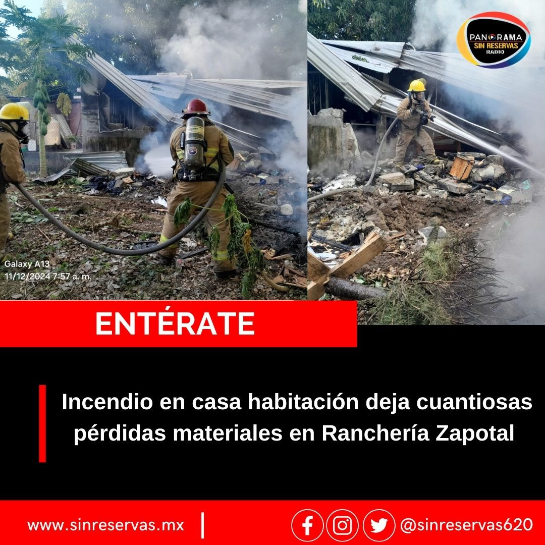 #Entérate | Un incendio afectó una vivienda en la Ranchería Zapotal, #Villahermosa– #Frontera. Bomberos sofocaron el fuego, evitando víctimas. Las pérdidas materiales fueron importantes, reporta Protección Civil Tabasco.