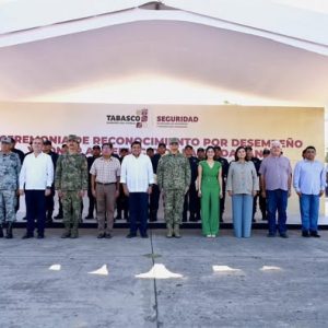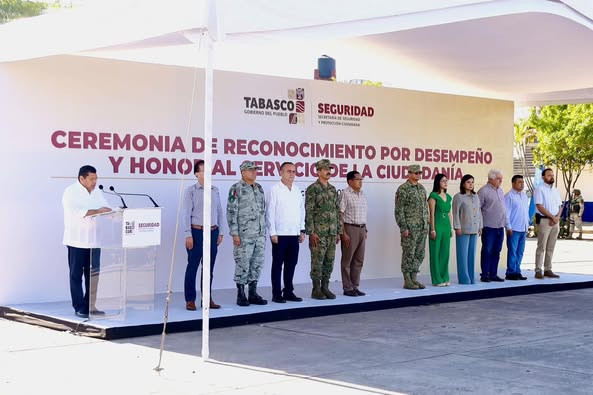 Yolanda Osuna Huerta estuvo presente en la ceremonia de reconocimiento a los elementos de seguridad pública, presidida por el gobernador Javier May Rodríguez. El evento destacó la labor de los policías en favor del bienestar de la comunidad, reafirmando el compromiso con la seguridad y la honestidad en el servicio.