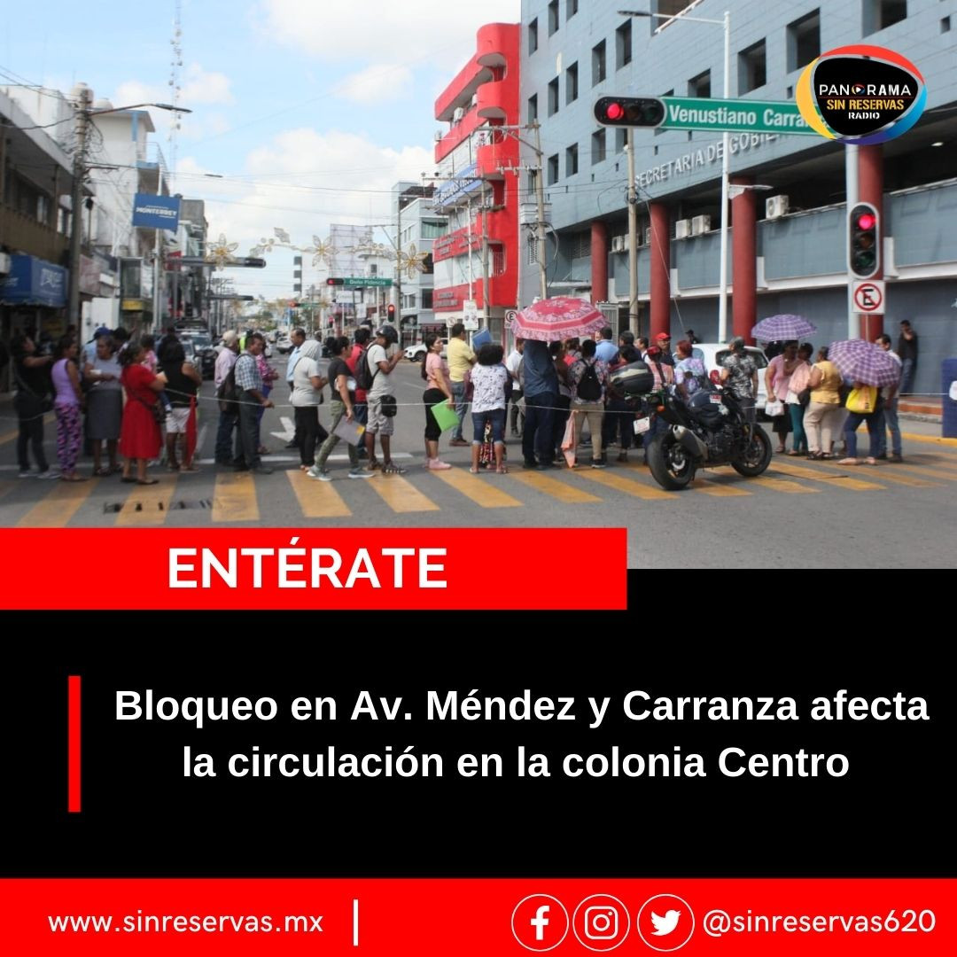 #Entérate | Un bloqueo se registra en la intersección de Av. Méndez con Carranza, en la colonia Centro. Conductores enfrentan complicaciones en la zona, mientras autoridades evalúan la situación para restablecer el tránsito.