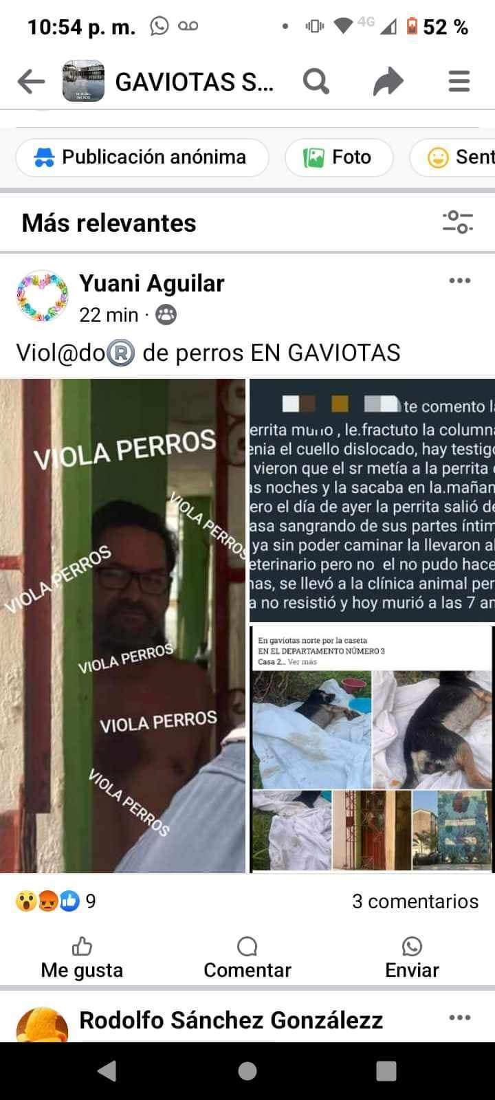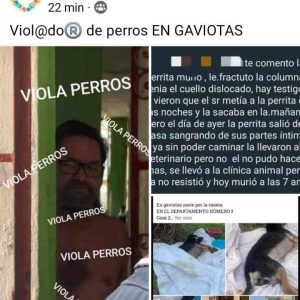 • denuncia acerca de un violador, la gente teme por que ya violo a una perrita y podría violar a algún menor, que las autoridades competentes tomen cartas en el asunto.