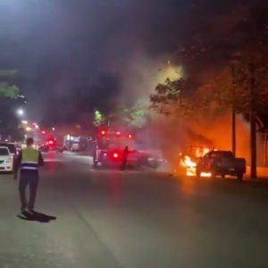 La noche de ayer personas desconocidas arrojaron una bomba molotov a vehículos que se encontraban estacionados frente a la Academia de Polícia en la Av. 16 de septiembre