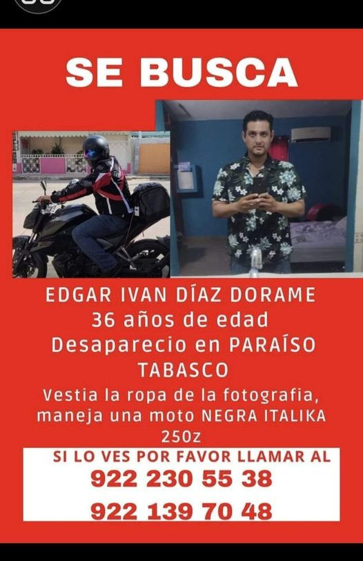 Con profunda preocupación, informamos que Edgar Ivan se encuentra desaparecido en Paraíso, Tabasco. Su familia y amigos están buscándolo desesperadamente y necesitan de su ayuda.