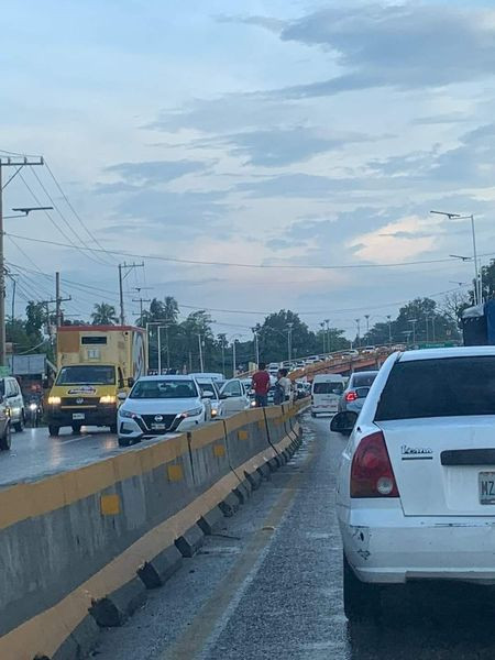 Carga vehicular en la carretera Nacajuca-Villahermosa, debido a dos accidentes, el primero se encuentra en la salida del Fracc. Pomoca y el otro llegando a Villahermosa cerca de ‘Pollos Pomoca’
