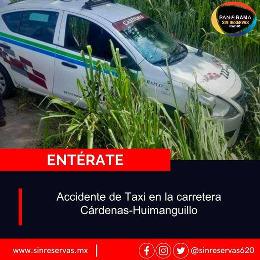 #entérate | Se reporta accidente de taxi en la carretera Cárdenas-Huimanguillo cerca de la entrada a Nueva Zelandia.