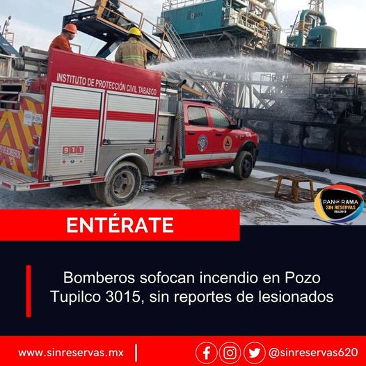 #entérate | Bomberos del Centro Regional Costa acudieron al Pozo Tupilco 3015 de Pemex, en Comalcalco, para apoyar en la atención de un incendio.