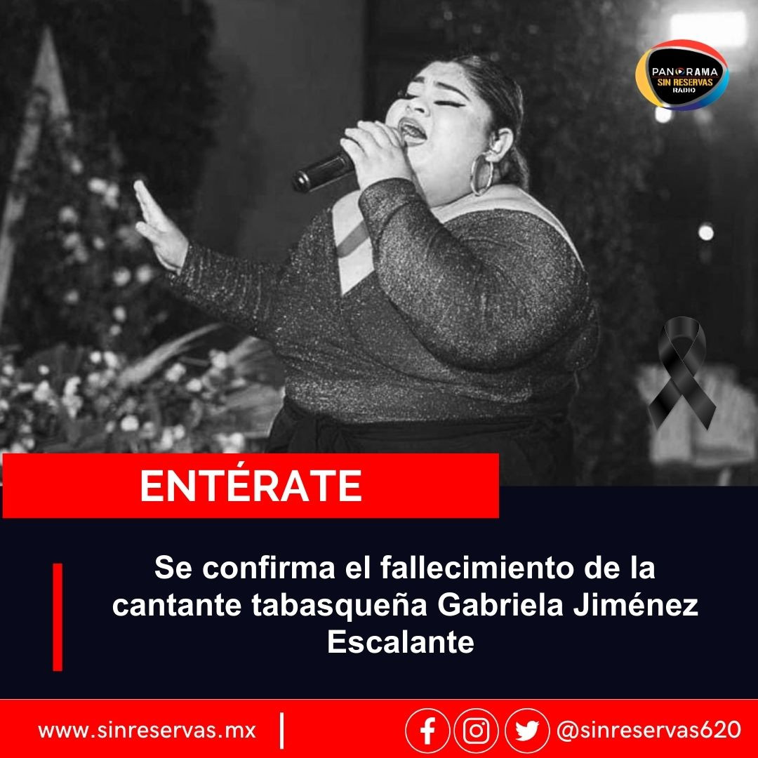 #Entérate I Se confirma el lamentable fallecimiento de la cantante tabasqueña Gabriela Jiménez Escalante; conocida por su inigualable voz y por participar con diferentes agrupaciones locales como Grupo Zeus de Paraíso, además de Orquesta La Bomba y Orquesta DCS3 de Nacajuca.