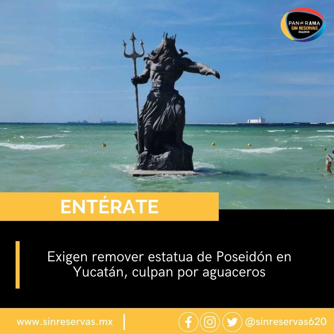 #Entérate | Yucatecos solicitan retirar la estatua de Poseidón en Progreso, culpándola de las recientes lluvias. En Facebook convocan a destruir el monumento el 15 de julio, aunque en su mayoría son bromas.