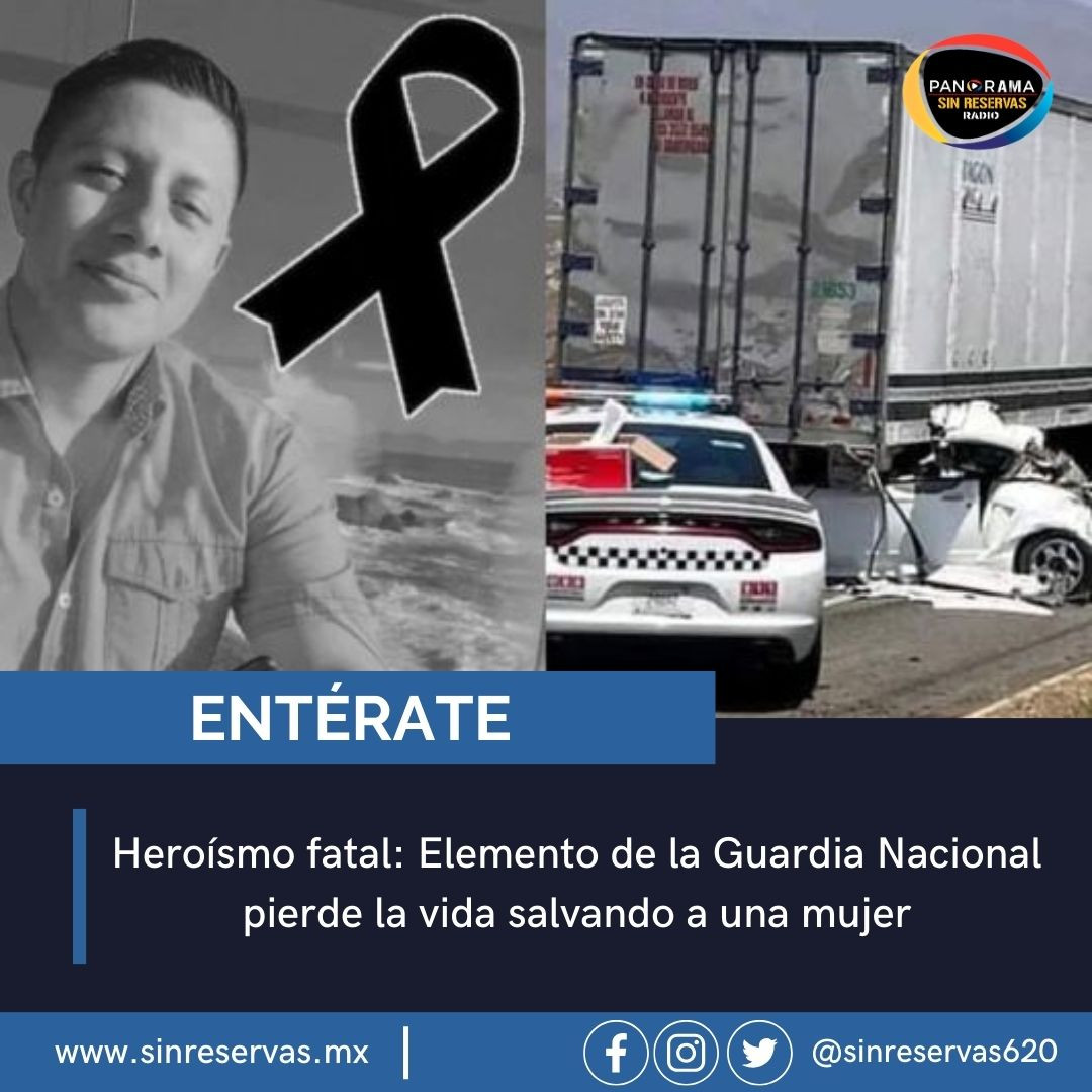 José Alberto De León Sánchez, elemento de la Guardia Nacional, murió heroicamente hoy por la mañana. Mientras atendía un accidente, notó que un tráiler no disminuía su velocidad y empujó a una mujer para salvarla. Ella sufrió raspones leves, pero José fue arrollado y falleció.