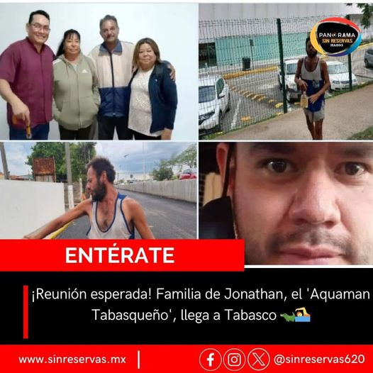 ¡Llega la familia! Jonathan, el ‘Aquaman Tabasqueño’, se reencuentra con sus seres queridos en Tabasco 🐊🏊 Jonathan, tras volverse viral al escapar de los cocodrilo en la Laguna de las Ilusiones, ha sido identificado por sus familiares, pues llevaba varios años desaparecido.