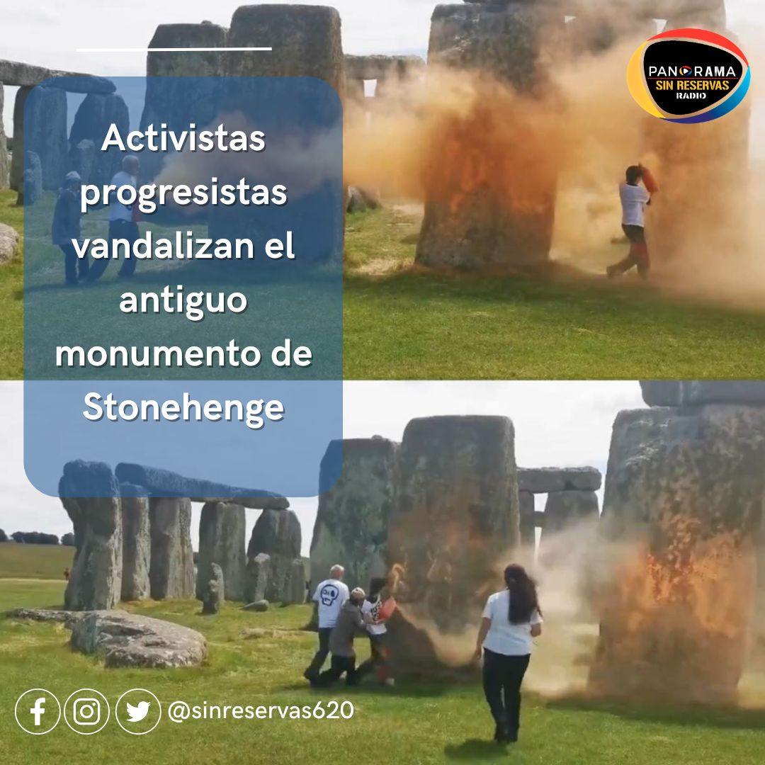 #Internacional Manifestantes ambientalistas rociaron con pintura naranja la estructura prehistórica más famosa del Reino Unido, Stonehenge. Exigieron que el gobierno entrante firme un tratado legalmente vinculante para eliminar gradualmente los combustibles fósiles para 2030″,