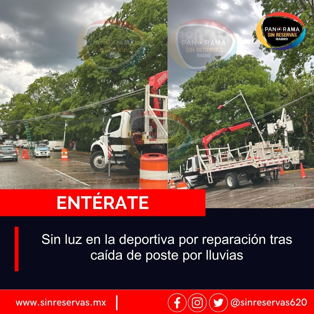 #AlMomento | La zona de la deportiva está sin luz debido al retiro de cables y el poste que cayó ayer por las lluvias que han afectado la capital en #Villahermosa.