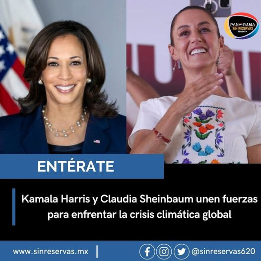 #Entérate | La vicepresidenta de EE.UU., Kamala Harris, y la próxima presidenta de México, Claudia Sheinbaum, se comprometieron en una llamada a trabajar juntas contra la crisis climática y a fomentar energías renovables. Discutieron estrategias para mitigar el cambio climático y reforzar la cooperación bilateral en proyectos de energía limpia,…Leer más