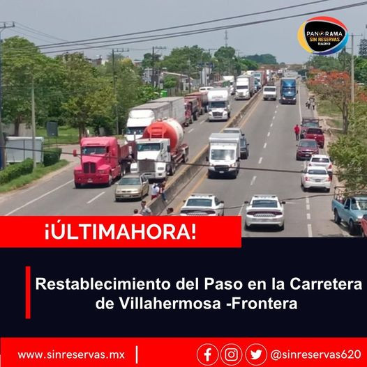 #UltimaHora | Se ha restablecido el paso en la carretera de Villahermosa – Frontera tras la llegada de los equipos solicitados.