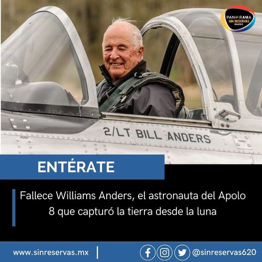 #Entérate | El astronauta del Apolo 8, Williams Anders, reconocido por capturar la emblemática imagen de la Tierra desde la Luna, falleció hoy a los 90 años mientras pilotaba su avión.
