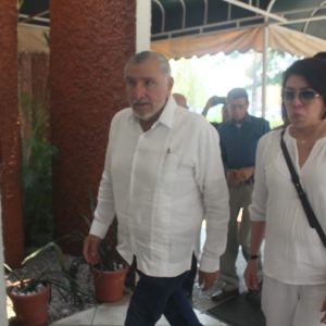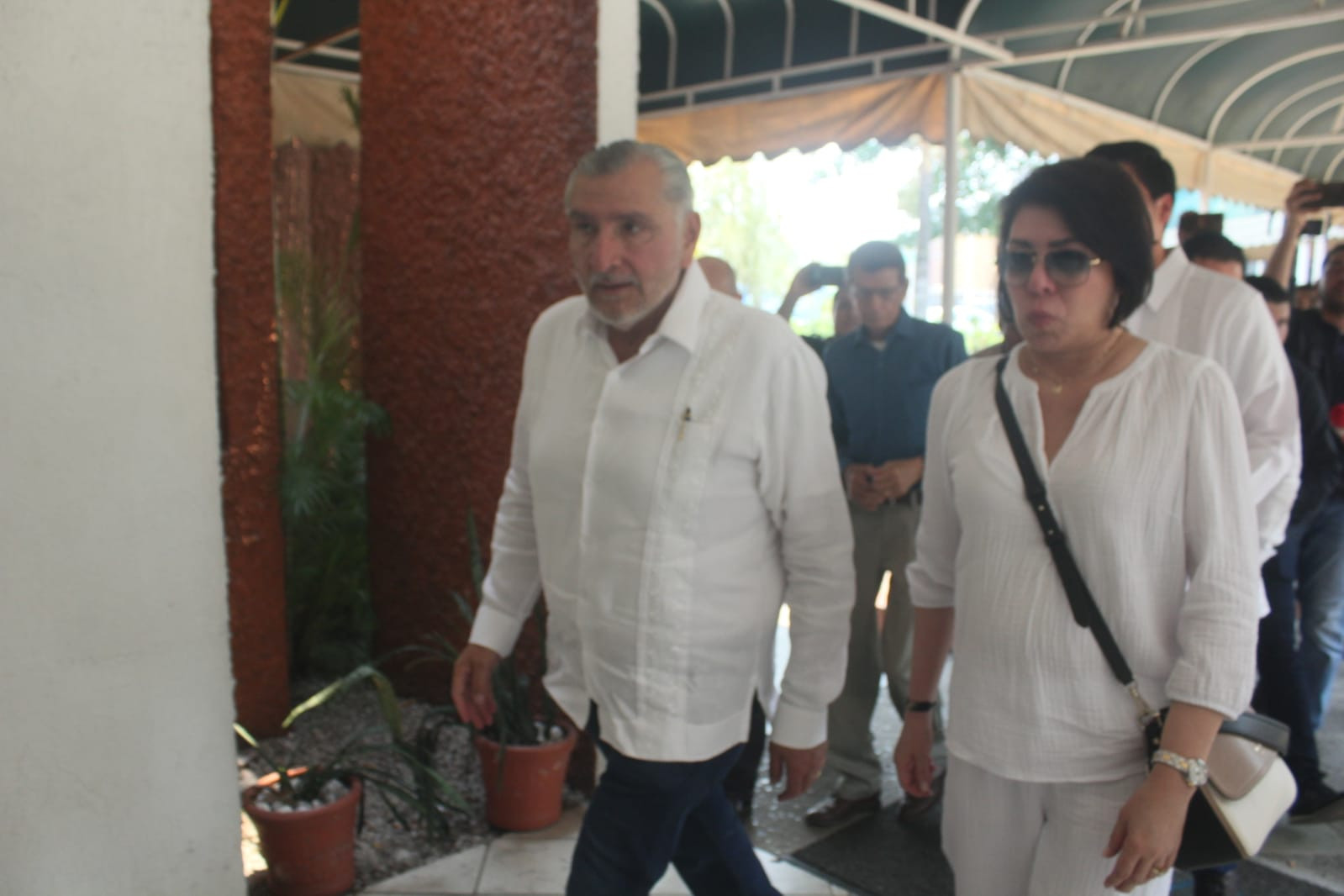 Adán Augusto López Hernández arriba al Recinto Memorial acompañado de su esposa Dea Isabel Estrada